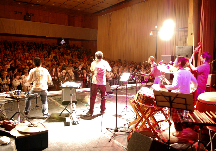 ミンスク公演は通関手続の関係で本番まで楽器が届かず、会館にあったありあわせの楽器で演奏を始めたというひのき屋にとって「伝説」のライブ。
